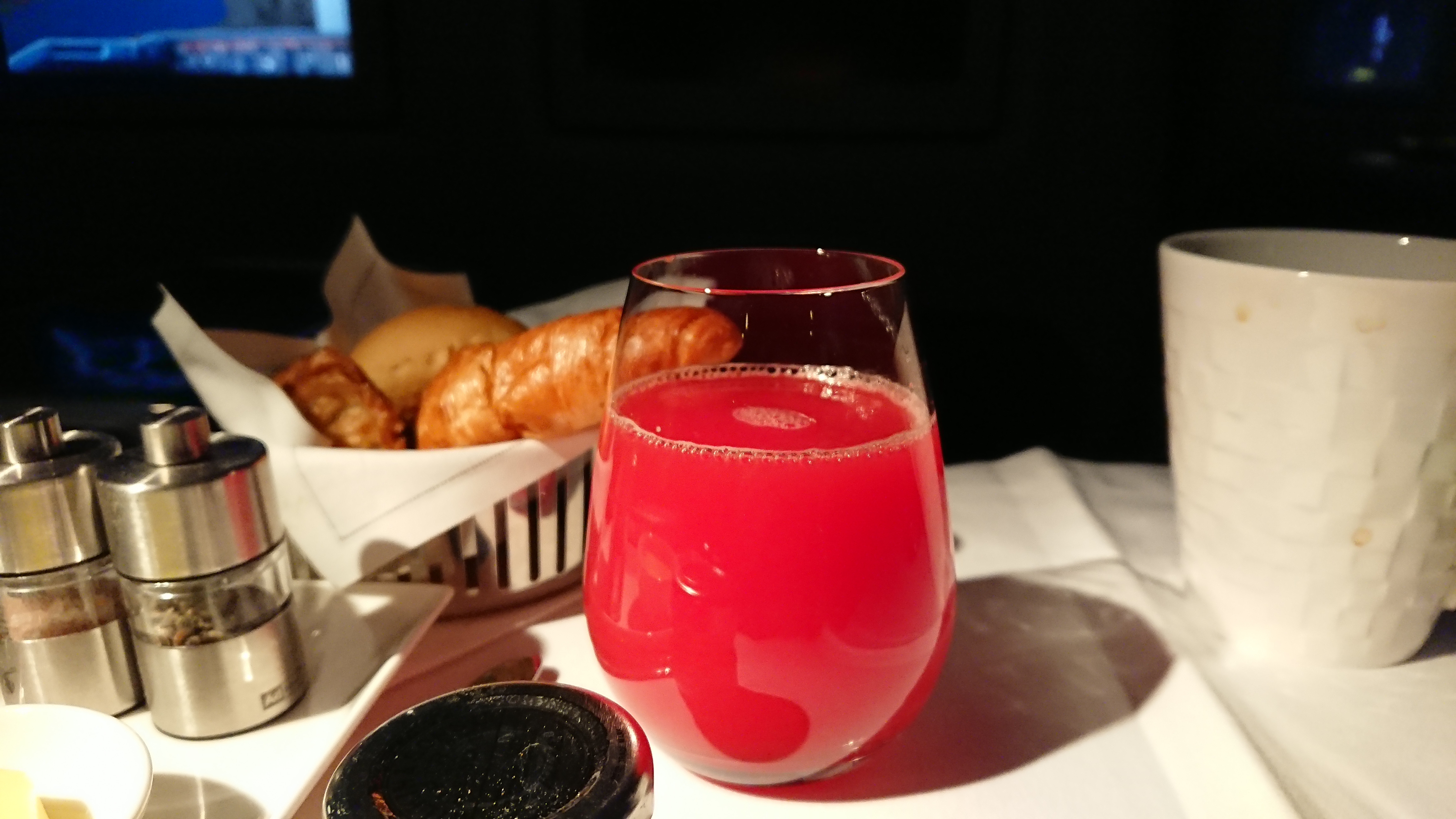 朝食でチョイスした西瓜のコールドプレスジュース、