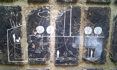 カラミ煉瓦で作られた壁にイラストが描かれていました。