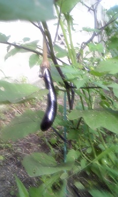 裏の畑で、ナスが実を結びました。 春に苗を植えて、そのまま放ったらかし。 作物に関してはまったくの放任主義ですが、 親はなくても子は育つ。 いえ、義理の親(近所のおじさん)が、 そっと水をやってくれたりするものですから、 遠くの親戚より近くの他人、ってことかも。 それでも実がなれば、嬉しい。 なすの花も見ることができました。 実を結ぶ花は本当にきれい。 野菜の花のようでありたいと思います。