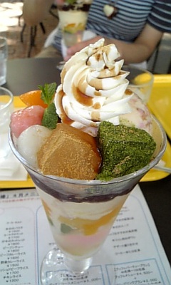 わらびもちと白玉がトッピングされたパフェが評判で、