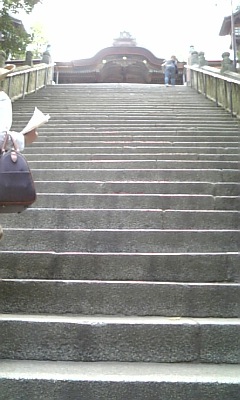 歌舞伎開場の時間が迫り、いま来た千段を駆け足で下ります。