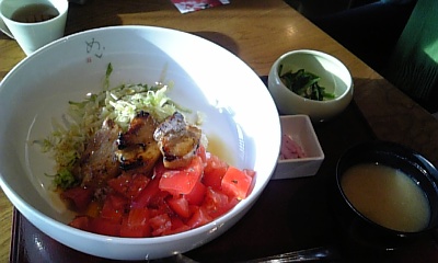 「わたしも野菜が好きになりそう」とは、豚角煮のトマト丼を食べたオタマの弁。