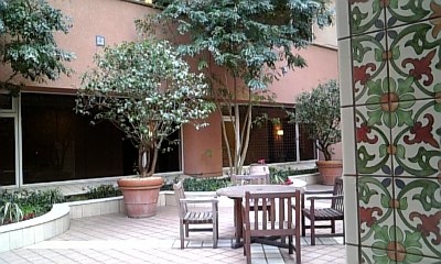 天気の良い日は、中庭でお茶を飲んだり本を読んだり、