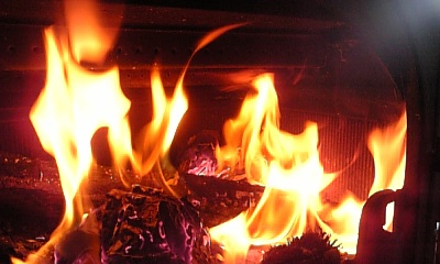 薪ストーブで正月飾りを焚いて「どんと」の代わり、