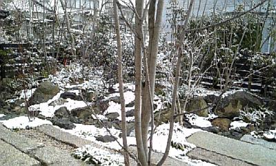 庭の苔に、うっすらと雪がつもった休日の朝。