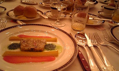 デザート&コーヒーが終わって、 さて、いよいよ世界チャンピオンの登場。 イタリア北部出身でラテンの血が流れるふたりのダンスは、 本場英国のような気取った風がなく、粋でキザでかっこいい! 羽のように軽く、アイスダンスのように速い、世界一の華麗なステップ。 足長、腰高、小頭のビジュアルも抜群。 こんなに素敵なものを生で観られるなんて、最高のXmasプレゼント。 ソシアルダンスに偏見をもっていたうさぎ、今宵深々と悔い改めました。 ドラマティックなラテンの「パソ」がいいなあ、と呟いたら R子さんのご主人がにっこりと笑って「ぜひ!おやりになれば」 また、へんなところにスイッチが入っちゃった。