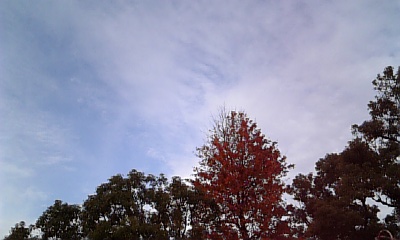 紅葉の残る木の梢と青く澄んだ空を見あげながら、