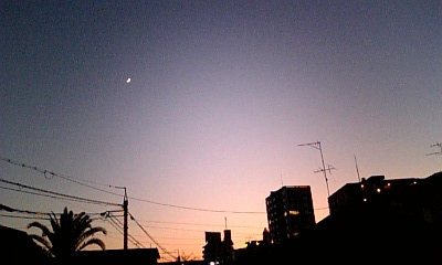 歩いて来ようと家を出たら、空に木星と金星と三日月。