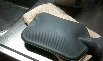 ぽこぽことポットのお湯を注ぎ入れ、タオルでくるんで布団のなかに。