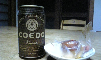 残暑が厳しい毎日だけど、夜は秋。というわけで、 ビールもちょっとheavyなボディにシフト。 そこで今宵のお供は伽羅(キャラ)という名のビール。 と言ってもお酒に強い方ではないので、 梅坪の栗饅頭をパクパクやりながらグビリ。 豆が好きなわっちはアンコも好きで、 珈琲でもお酒でも一緒にやっちゃいます。 伽羅の製造元はコエドブルワリー ホップの苦みが舌に残って、いけますよ。 ホームページも綺麗で楽しめます。 すっかりファンになっちゃった。 酒屋で見かけたらお試しください。