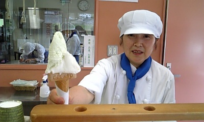アスパラほうれん草とゆず茶のアイスをダブルで。