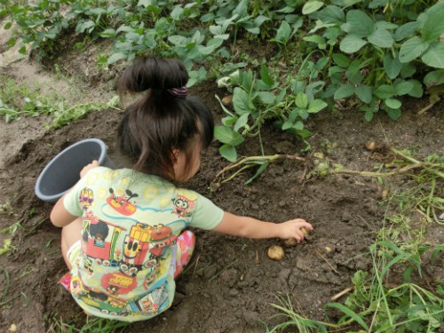 雨もあがった日曜日。晴れているまに「じゃがいも掘り」です。