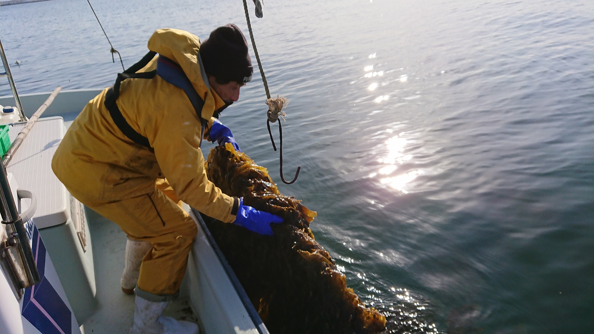 ロープに種(胞子)を植え付け、海に放って成長を待ちます。