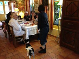 レストランのなか、モーリスさんの愛犬がくつろいでいました。
