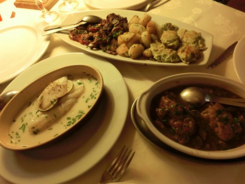 うさぎ肉の煮込み、白身魚のレモンソース煮。