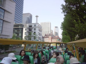 この日、東京は26℃の晴天、2階建てバスの上からみる