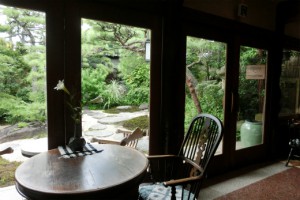 庭を眺め、歩き疲れた足を休めながら