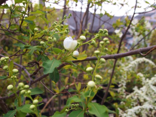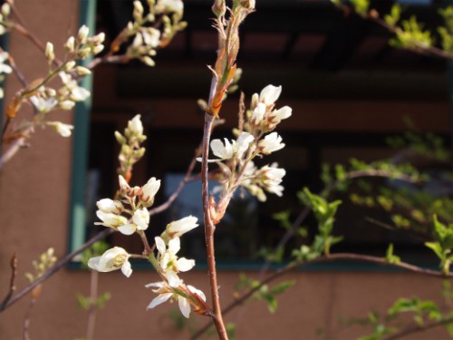 昨年植えたジューン・ベリー。ことし初めて花を咲かせました。