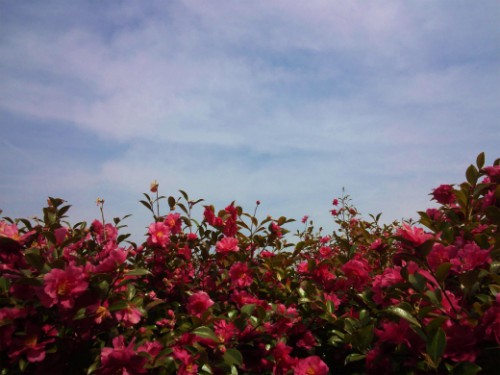 かれこれ20年歩き続けている太田川河川敷に毎年咲くさざんかです。