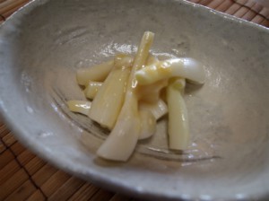 らっきょう漬けにするものよりは辛みも抑えて作られているので、さわやかな初夏の風味に箸がすすみます。