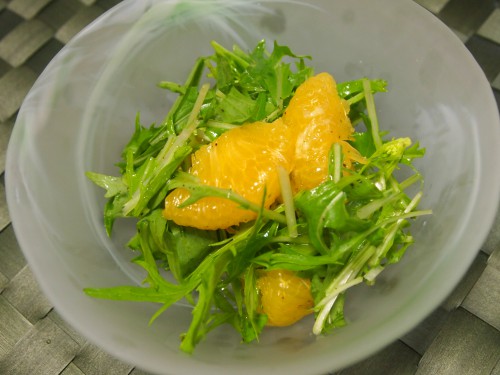 最近のお気に入りがこれ。はっさくと水菜のサラダです。