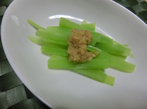 チシャトウが淡泊な味なので、ひよこ豆みそとオリーブオイルで
