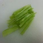 ちしゃとうの皮は厚めにむき、薄くスライスして茹で、