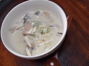 野菜市に顔を見せはじめた白菜はパリパリ! 豆乳シチューを作ってみました。
