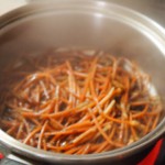③鍋に調味料を入れて煮立て、水気を切ったつくしを加えて水気がなくなるまで煮る。