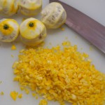 ①柚の皮をむき、みじん切りにする。