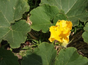 傍若無人にふるまってきたカボチャのツルに、実が1つ、2つ。