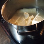 大きな米袋いっぱい頂いたので、せっせと皮を取って大鍋で茹でます。