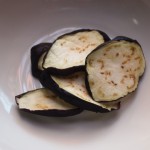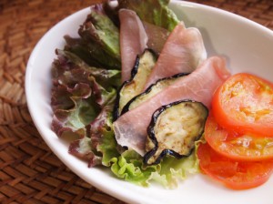 ①ナスはオリーブオイルで焼き、レモン汁をかける。