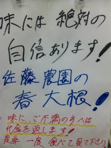 広島市では作るひとの少ない春大根、1本270円と強気です。