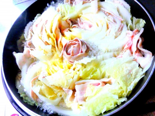 ③②に酒を入れ、ふたをして中火で蒸し煮にする。