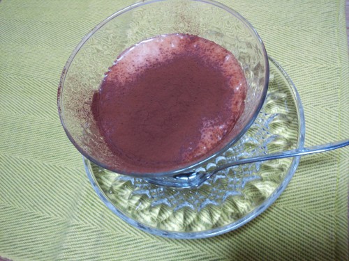 ③1人分ずつ器に入れ、粉ふるい器でココアパウダーを振ります。