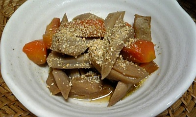 今夜も野菜づくしで蓮根のきんぴらと鶏肉入りサラダと湯豆腐。