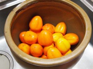 材料 柿(渋柿で甘柿でも)5キロ、穀物酢70㎖