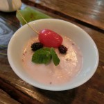デザートにも近くで採れる山桃の実とグイ実が添えられています。
