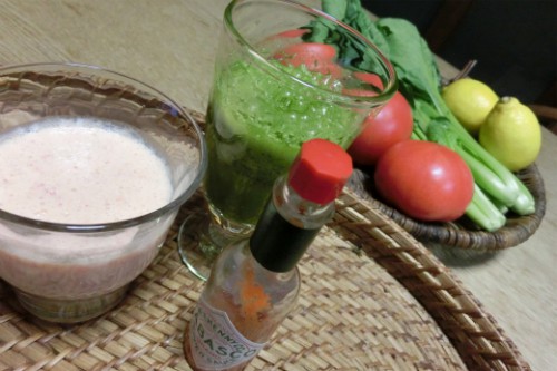 作ったのは小松菜ジュースと、トマト&ヨーグルトジュース。