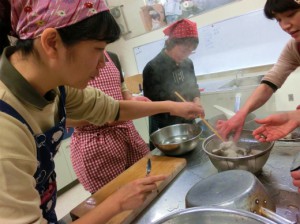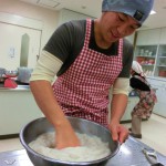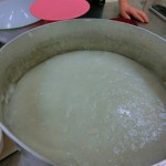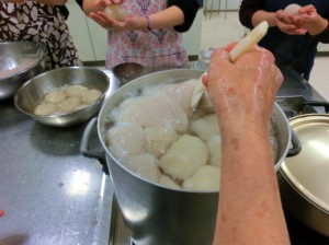 これが力仕事、練りが足らないとこんにゃく玉になりません。
