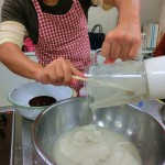 炭酸ナトリウムを加えて、よく混ぜ、こんにゃくの種の出来上がり。