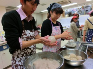 水または湯を少々加えながら、渾身の力をこめて練っていきます。