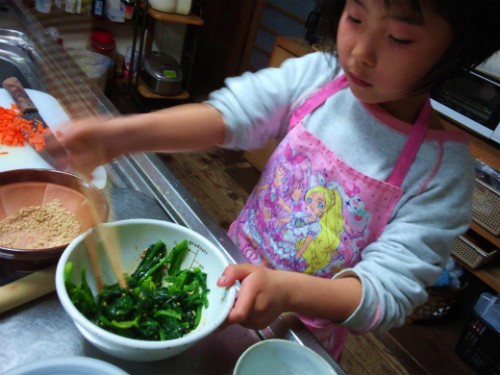 今夜はホウレンソウのおひたしを担当。