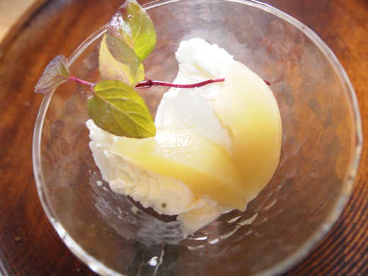 このまま春になるのじゃないかと錯覚するような、良いお天気です。料理講座の受講生の方から頂いたのは、新潟の西洋なし「ルレクチェ」。ルレクチェは明治36年頃フランスから新潟県内に導入されたという西洋梨で栽培がとても難しいことから幻の梨とも呼ばれていると言います。ありがたく、濃厚な甘さと香りをまず一口生で味わい、残りをコンポートにしてみました。白ワインと生姜シロップと砂糖で煮込み、ガラスの器に盛ってみたら、まさに春の陽差し。