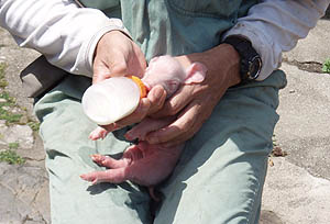 5月5日に訪ねた祝島の氏本農園、 もうじき産まれるんですよ、と言っておられた お母さん豚が無事出産のニュース。 乳首は12個なのに、産まれた子豚は17匹。 おっぱいにありつけない子豚のために、 氏本さんが猫用のほ乳びんで授乳。 あ、子豚になりたい、と瞬間思ったうさぎは 氏本さんの働く手に惚れてしまったのでした。 ともあれ、命の誕生は嬉しいものです。