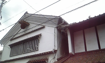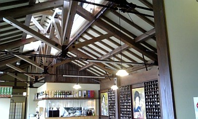 蔵元の軒下にはお約束のまるい「杉玉」、酒造の守り神様です。