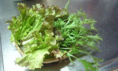 裏の野菜ソムリエ農園で収穫の水菜とチシャ、
