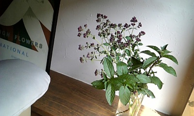 木々に囲まれた生活なので お祝いなどで花を頂く以外、 部屋に花を飾る習慣はありません。 例外はハーブ、これは 眺めるというより清浄な空気を楽しむために。 bedのそばには、オレガノ&ミント。 頂いたラベンダーの鉢は花を刈って、 これも寝室の窓辺に吊しました。 優雅な暮らしと思われるかも知れません。 が、実は雑事に追われてバタバタの毎日。