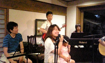 可愛いヴォーカルの華ちゃんのひざに抱っこされて